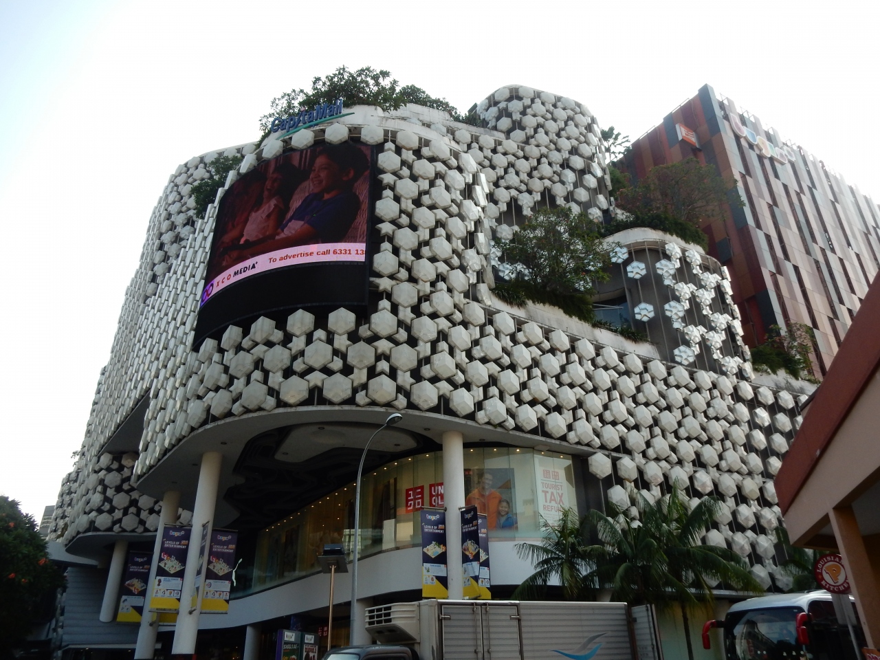 ブギス・ストリートの隣にある、最近できた銀色の外観が特徴のモールです。