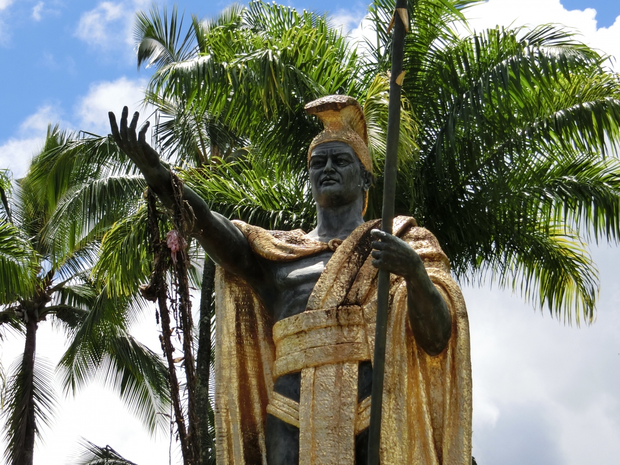 ハワイ島東部、ヒロのワイロア州立公園に建てられているカメハメハ大王の像。
