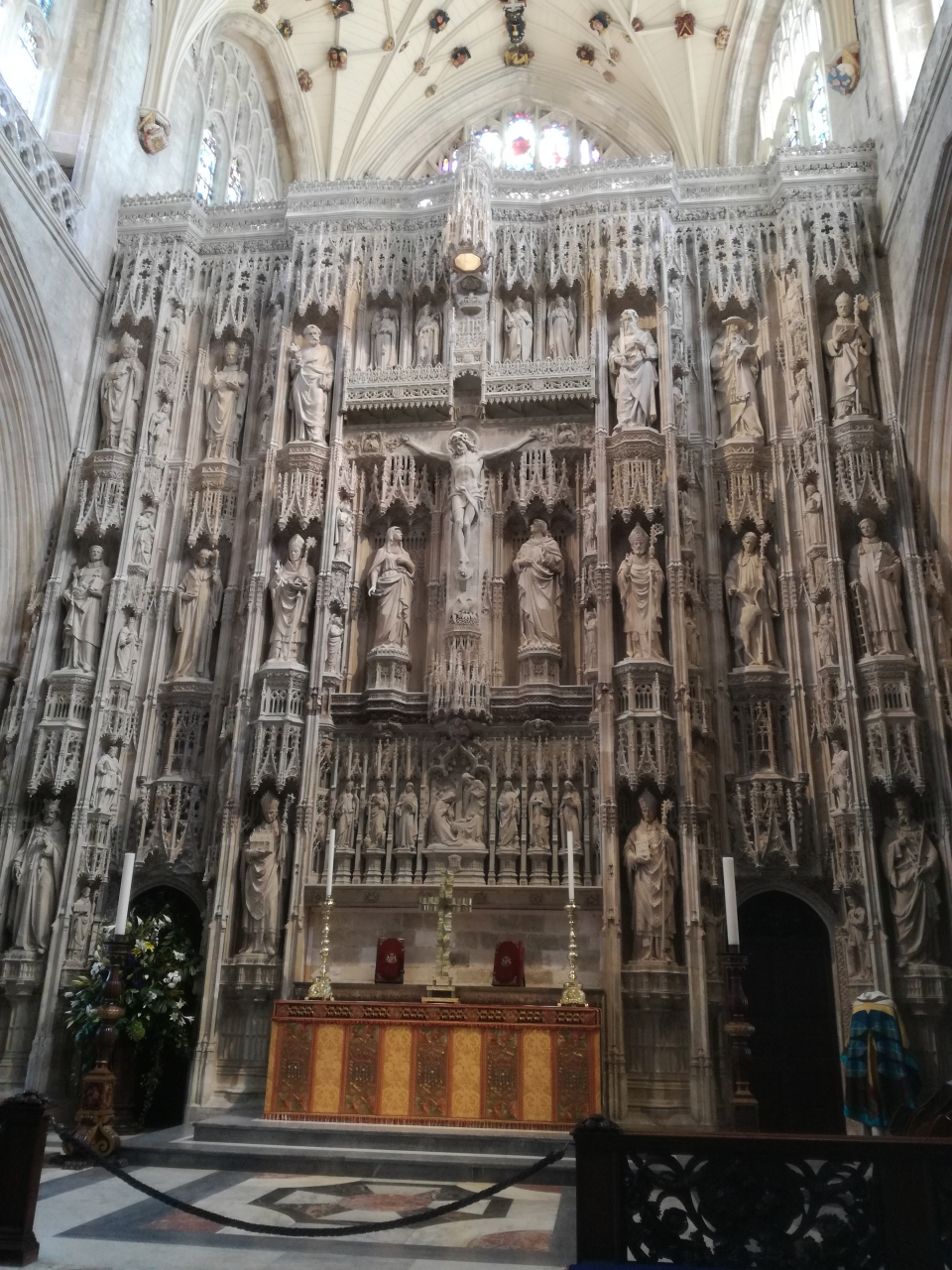 側廊にはジェーン・オースティンの墓があるのが有名。教会建築好きには木彫の美しい聖歌隊席、最近修復クリーニングが終わりきれいになった祭壇(修復終了に合わせて行きました)などがあります。
