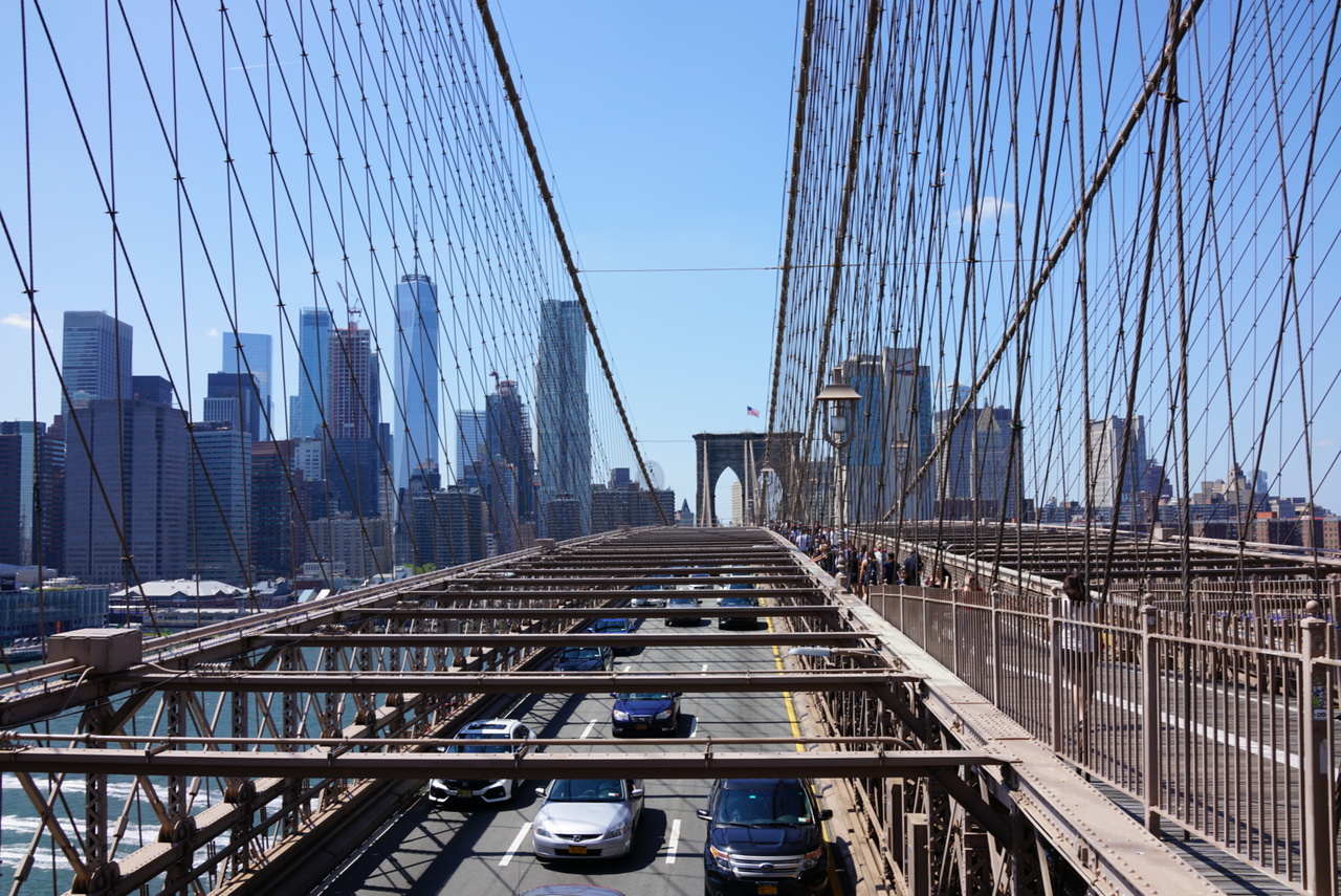 ここは色々なCMなどでも使われていますし、もはや説明不要な観光スポット、でも入り口はどこ?と思う方もいるかもしれないてますが、ブルックリン川の入り口はGoogle MapでBrooklyn bridge walkway starting point Brooklynで検索してみて下さい。マンハッタン側はGoogle Mapでリビング・メモリアル・グローブで検索してみて下さい。そこが歩行者・自転車用道路の入り口になります。