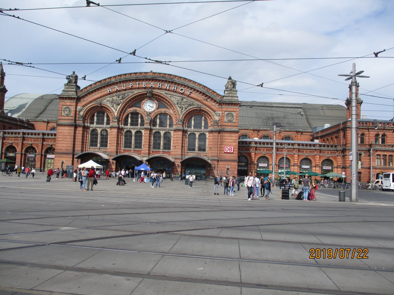 ケルン中央駅から、ICを利用してこの駅に到着しました。かなり大きな駅でハンブルク、ハノーファー、ミュンスターなどとを結ぶ列車が発着しています。駅構内は、DBの窓口やインフォメーションのほか、売店やドラッグなどいろいろな店がならび、旅行者や地元の人などでかなりにぎわっています。