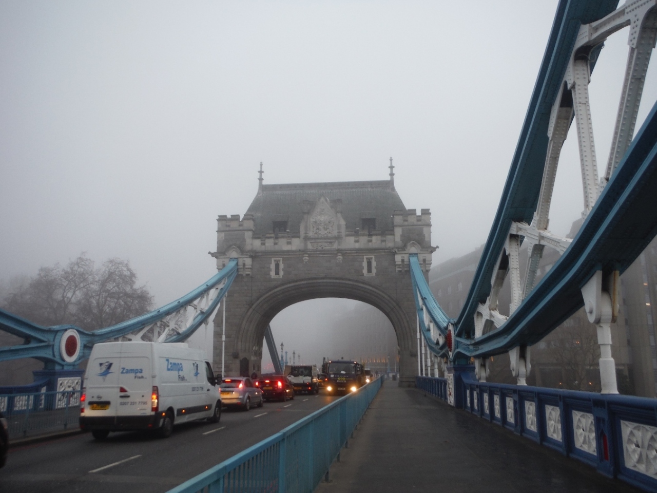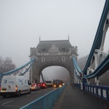 タワーブリッジにも行きました。テムズ川に架かる大きな橋でゴシック様式の尖塔があり跳ね橋になっています。歩道は広く、歩きやすかったです。冬の朝早い時間だったのでなので霧が濃かったです。ロンドン塔から見えていますのでロンドン塔の観光の際に立ち寄ってみてください。橋のすぐそばにはスタバもあります。