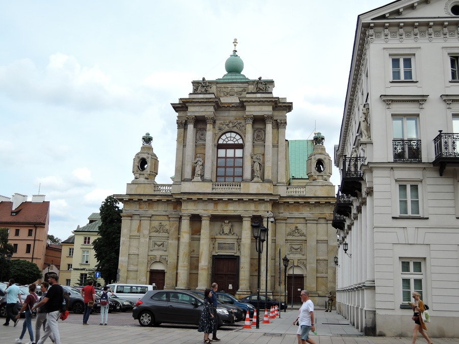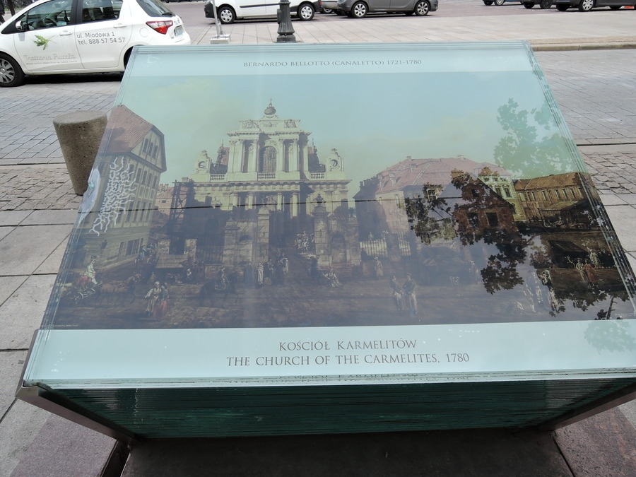 第二次世界大戦中に破壊されなかった教会の1つで、豊かなバロック様式の装飾が施されています。通りの前に1780年の教会の外観と周りの風景が描かれた絵が展示されいていました。イタリアの風景画家ベルナルド・ベッロット( BERNARDO BELLOTO CANALETTO)の絵のようです。