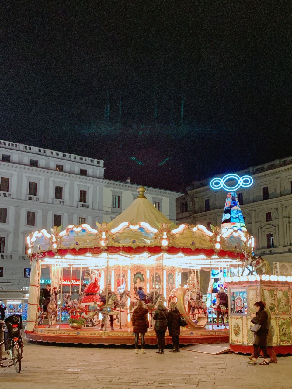 メリーゴーランドが目印の広場です。ここは私の大好きなカフェ、ジッロがすぐ近くにあります。ジッロのテラス席はこの広場に面していてソファに座って何時間もこの景色を見ました。ストリートミュージシャンの演奏もステキ。