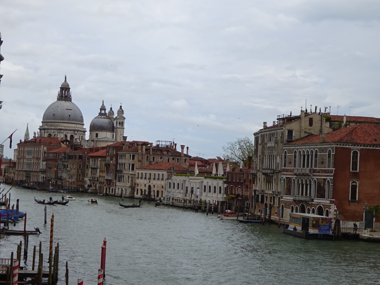 オプショナルツアーで参加した街歩きツアーでもアカデミア橋を通り、橋の上で記念写真を撮って貰いました。サンマルコ広場からは少し離れていますが、橋の上からの眺めはヴェネチアの紹介記事にも多く乗っているビューポイントです。