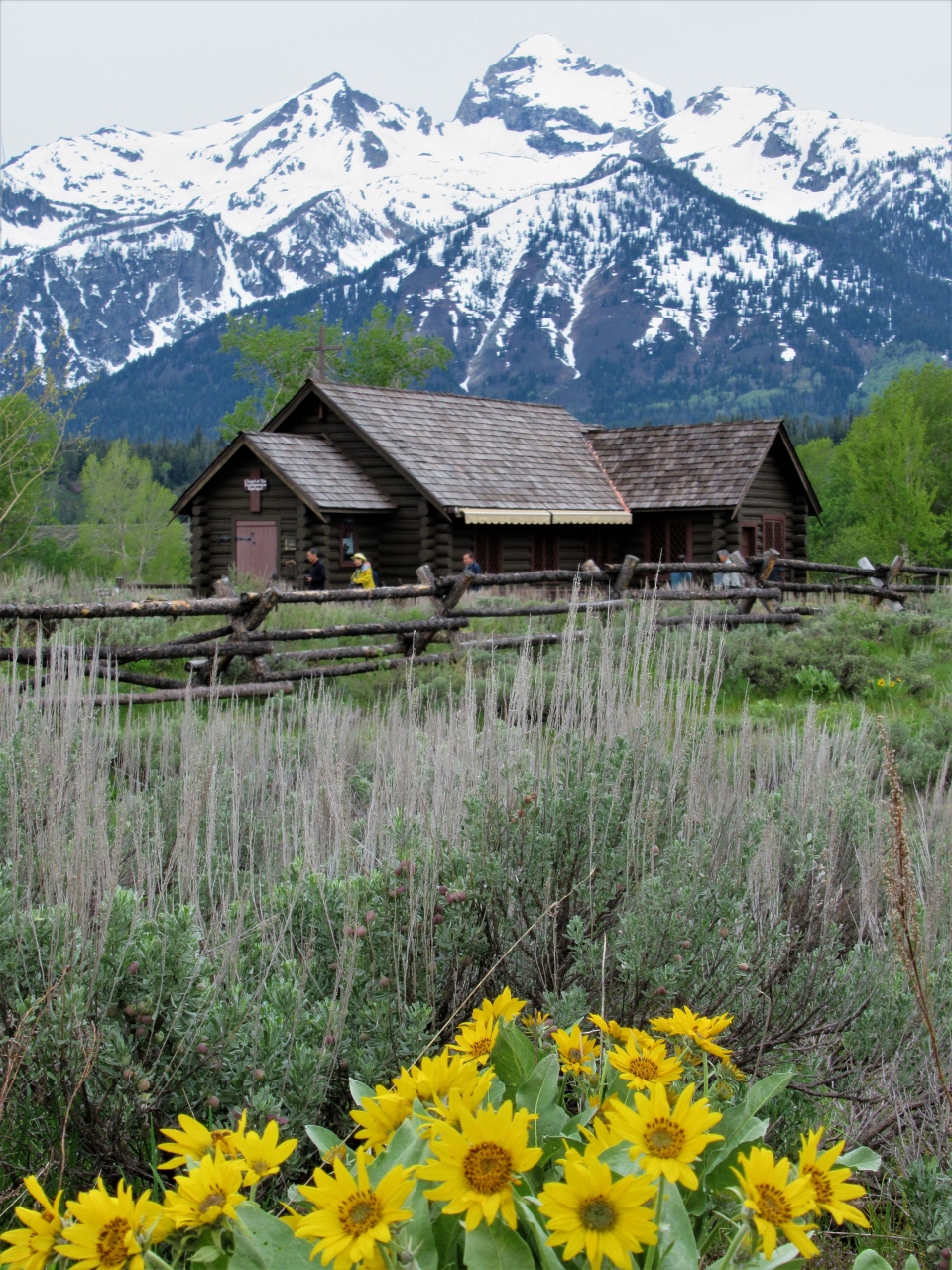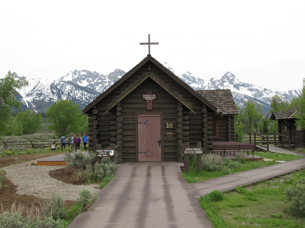 「トランスフィギュレーション礼拝堂」はティートン山脈に抱かれたように建っている小さな教会。