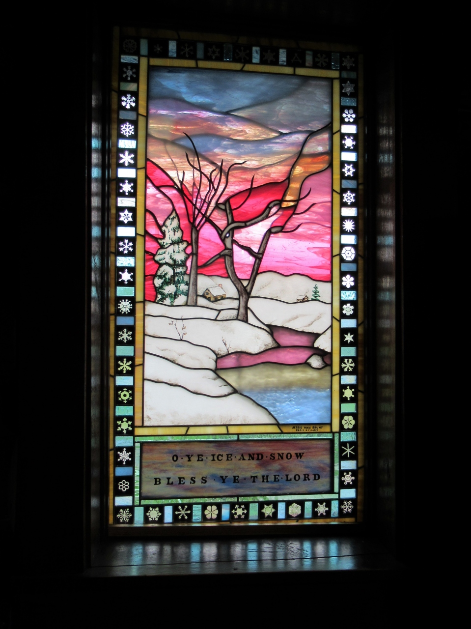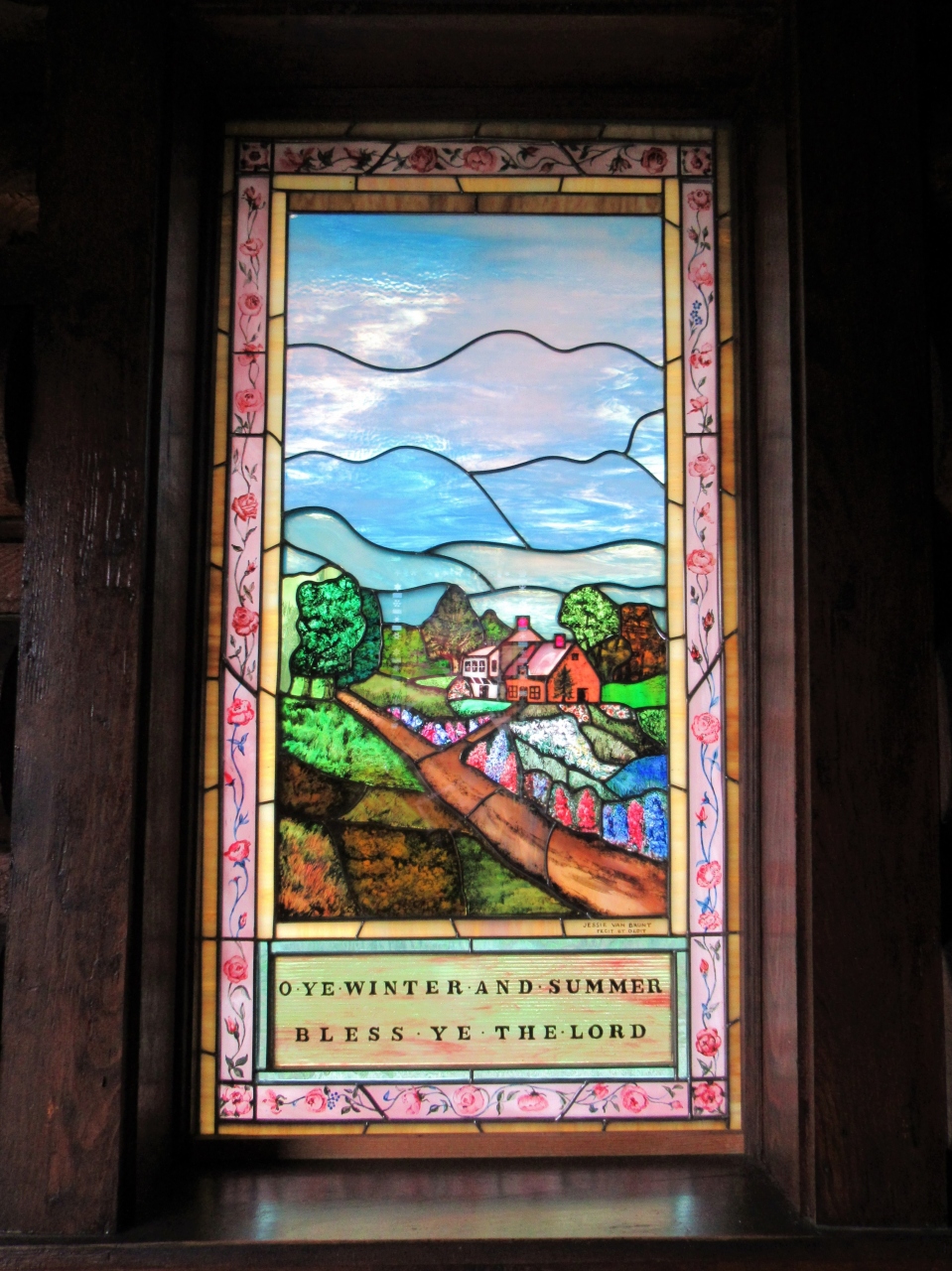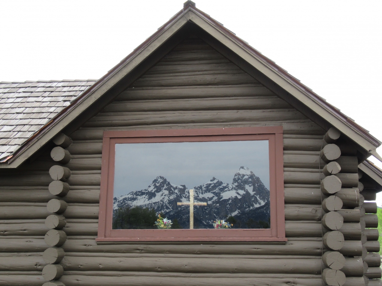 教会の窓から見えるティートン連峰は額縁の絵のように綺麗。