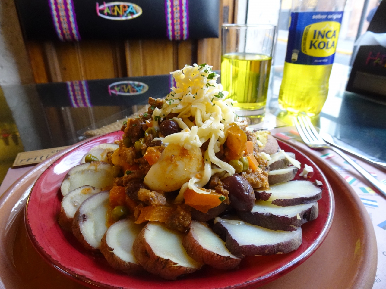 刻まれた唐辛子と肉と野菜の混ぜられたものがポテトの上にのっていました。