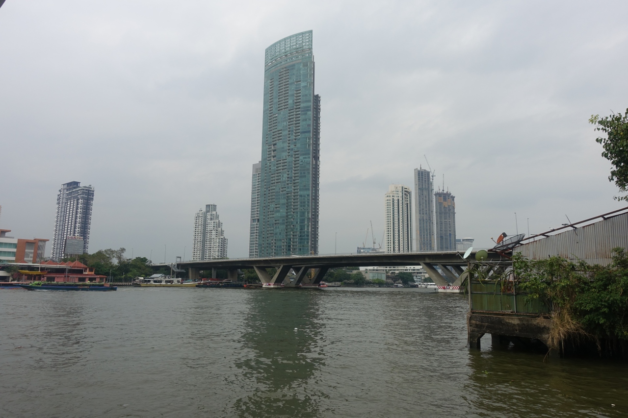 チャオプラヤー川に架かる橋って意外と少なめで、観光客がよく行く範囲では数えるほどしかありません。このタクシン橋は真下にチャオプラヤーエクスプレス(ボート)のサートーン船着場があるので、なにかと目にする機会の多い橋です。
