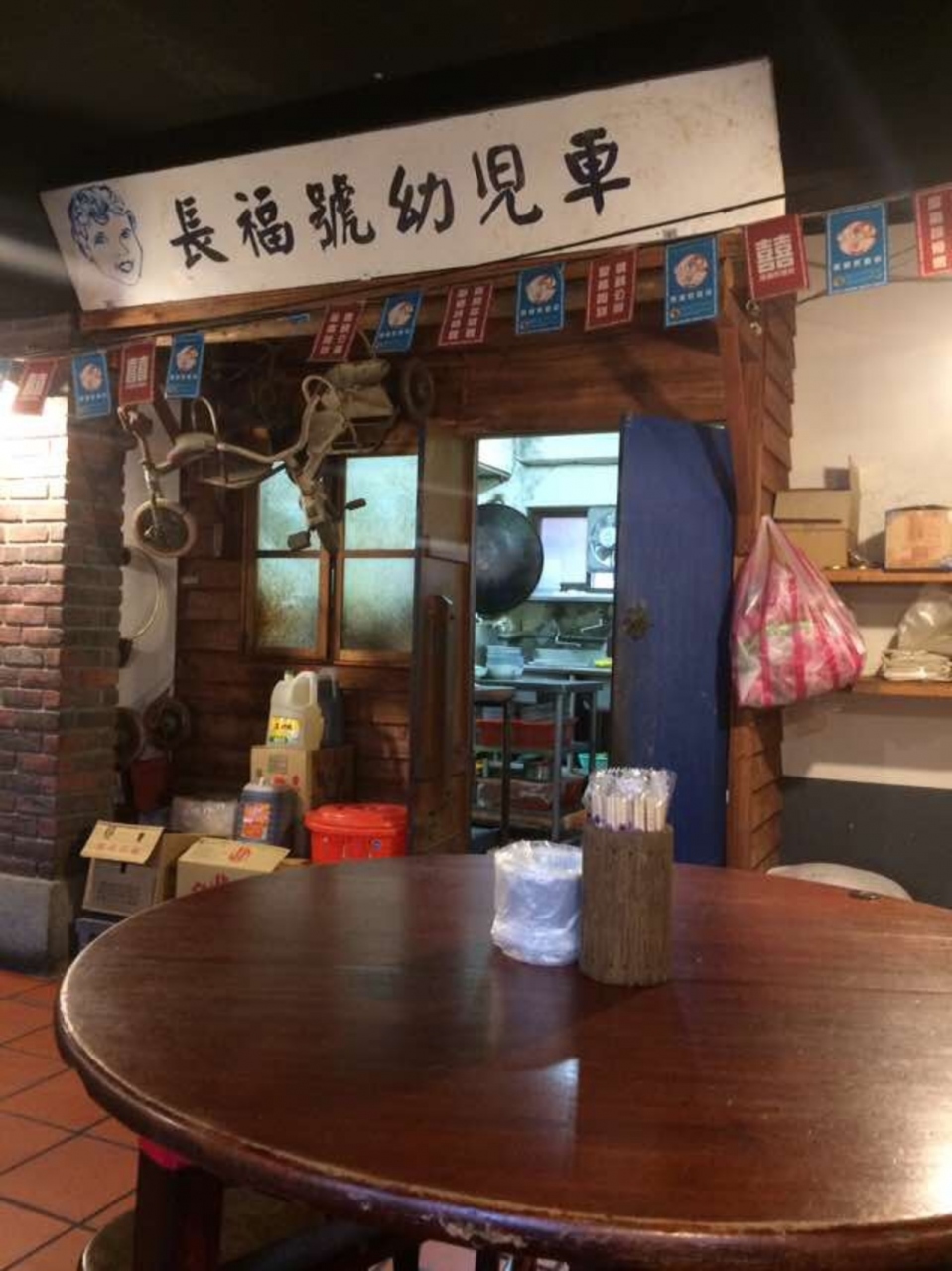 お店は2階にあり、階段を登っていきます。店内は、昔のお店の雰囲気満載で、自転車屋さんの軒みたいになっています。レトロな音楽も流れていました。2階なので、窓から老街の様子が見えました。ごはんの上におかずがのっていて、排骨が一番上でした