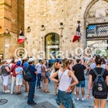 シエナに滞在しているときに立ち寄りました。世界遺産「シエナ歴史地区」にあるトロメイ広場に面して建っている建物です。丁度フラッグパレードが通過するタイミングで、伝統的なコスチュームに身を包んだ人たちのパレードが見れました。
