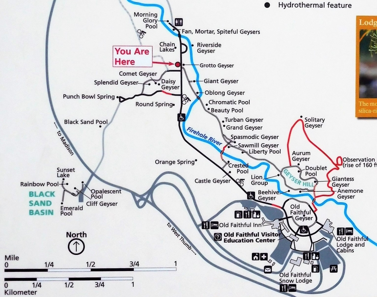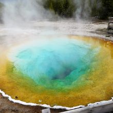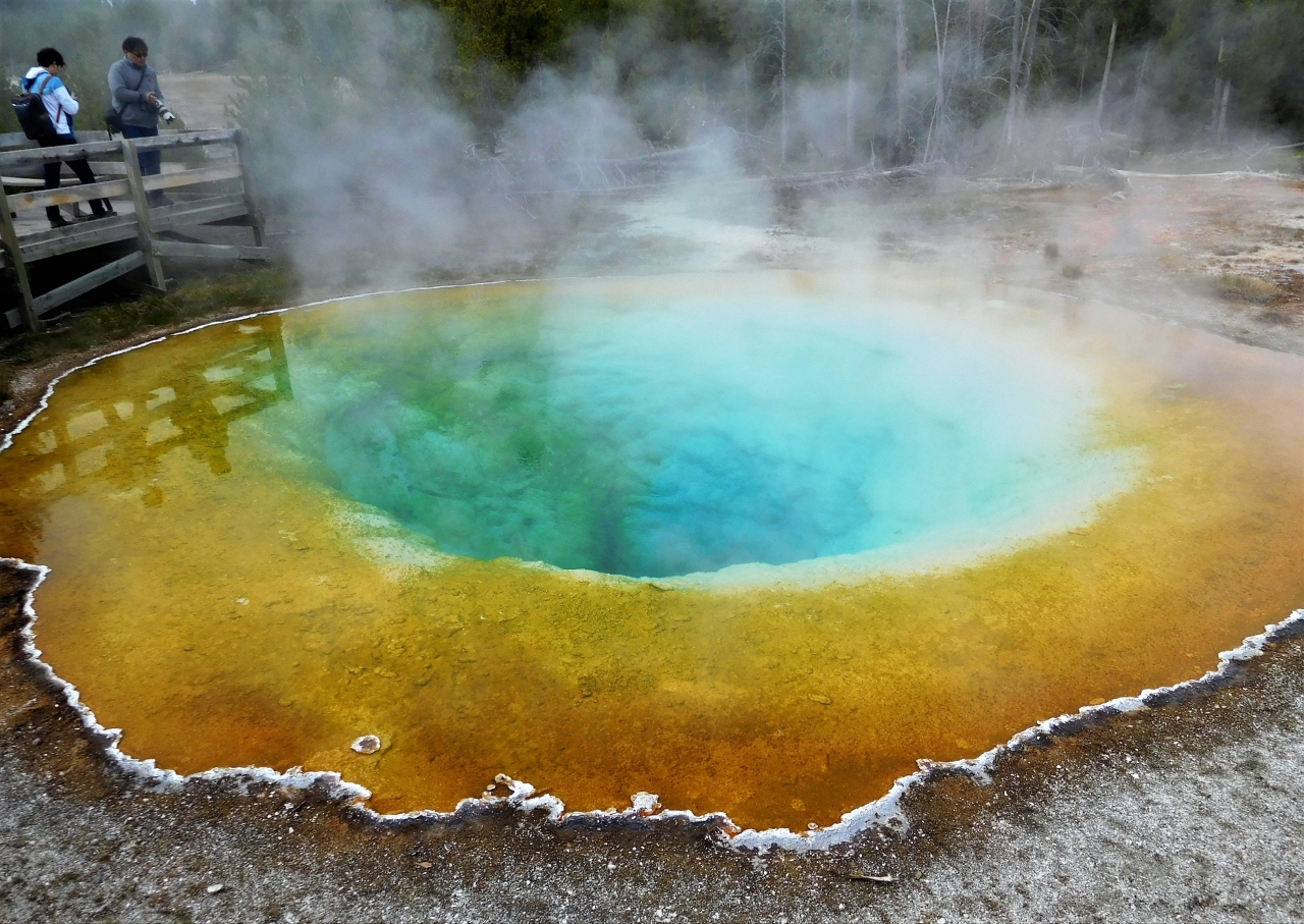 ビジターセンターから舗装された道を30分ぐらい歩くとモーニング・グローリー・プールに着きました。