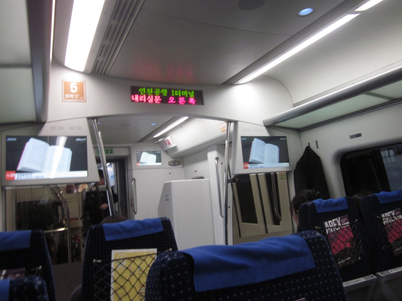 以前は、空港バスを利用していましたが、この空港鉄道 A'REXが早くて便利です。ソウル駅まで直通なので、大体45分程で着きました。日本人の利用者も多いです。