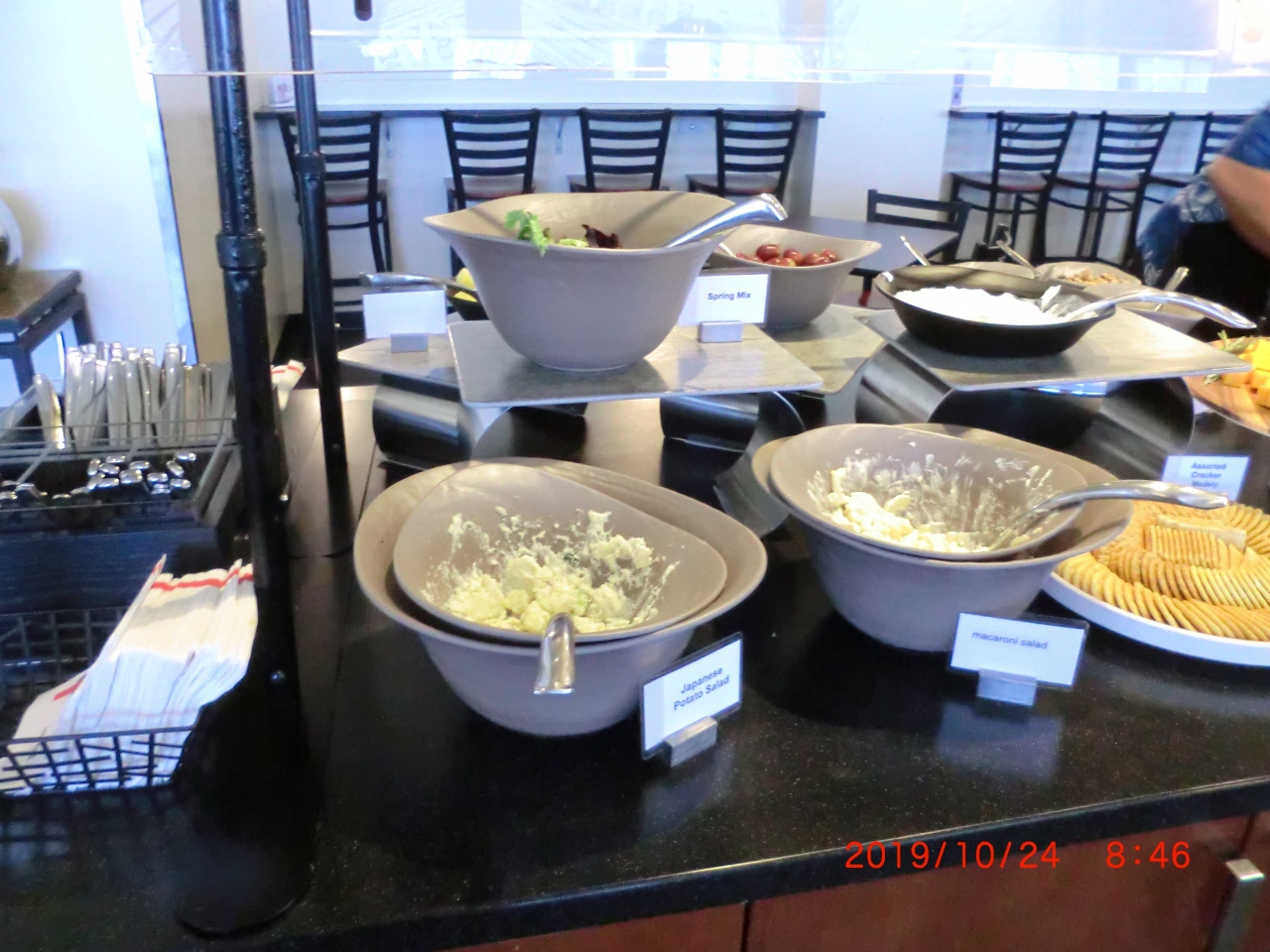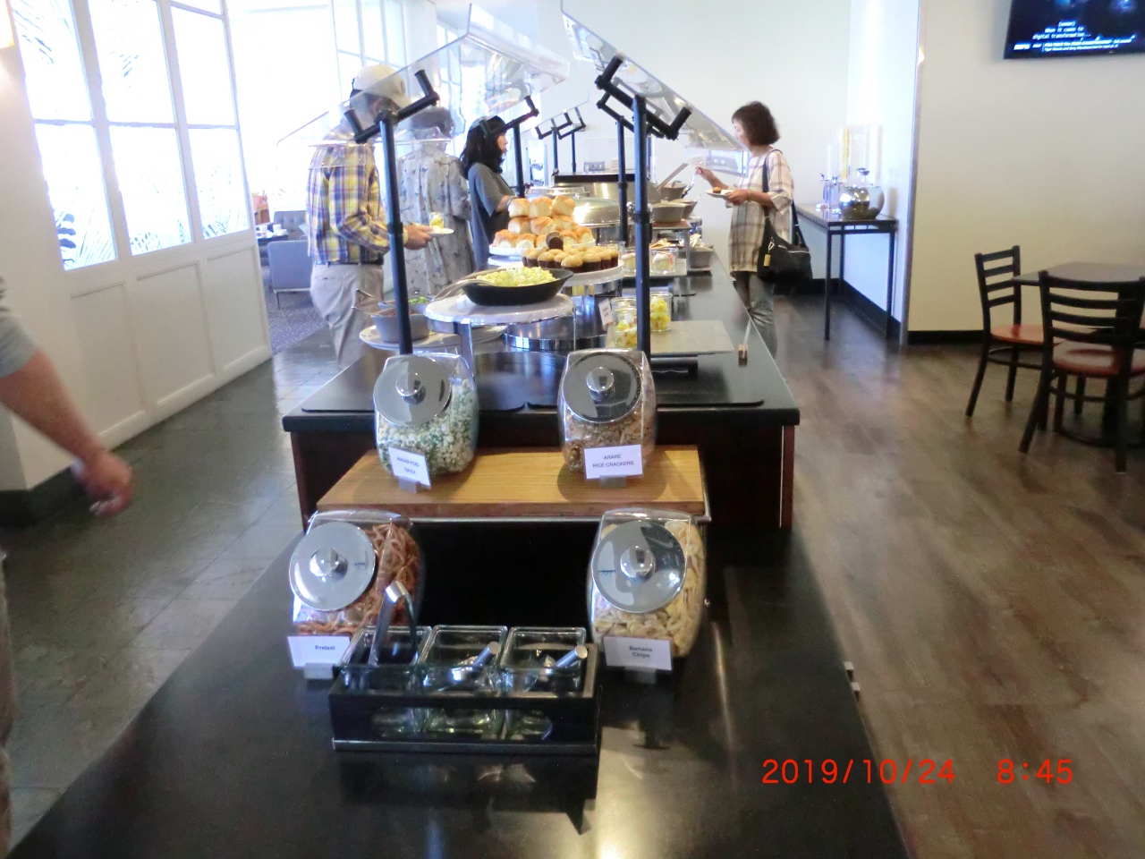 ハワイの帰りにこのラウンジに行きました。ビジネスクラスのラウンジとしてはまあまあかな。やはり成田の方が充実してるように思います。ここではリキュール類は有料でした。食べ物や飲み物は充実してました、軽食程度でしたが。10:20の便でのんびりしてられませんでした、ANAのラウンジも行きたかったんですが時間が無くなりいけませんでした。混載バスに乗るどこかのホテルに泊まった日本人が寝坊して40分遅れたからです。朝食はここでと思ったんですが機内食も考え腹三分にしておきました。