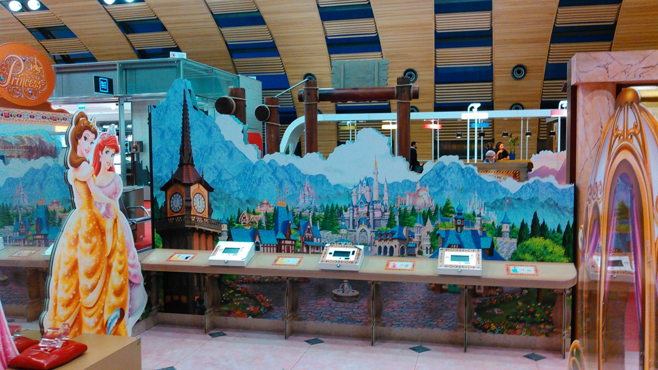 ツアーの往復で、利用しました。時間があったので、ぶらぶら散歩しました。小さな子供が喜びそうな、ディズニーのお姫様達がずらり。白雪姫、シンデレラ・・・カボチャの馬車までありました。孫を連れてきたら、離れないで喜んで遊び続けるだろうと思いました。
