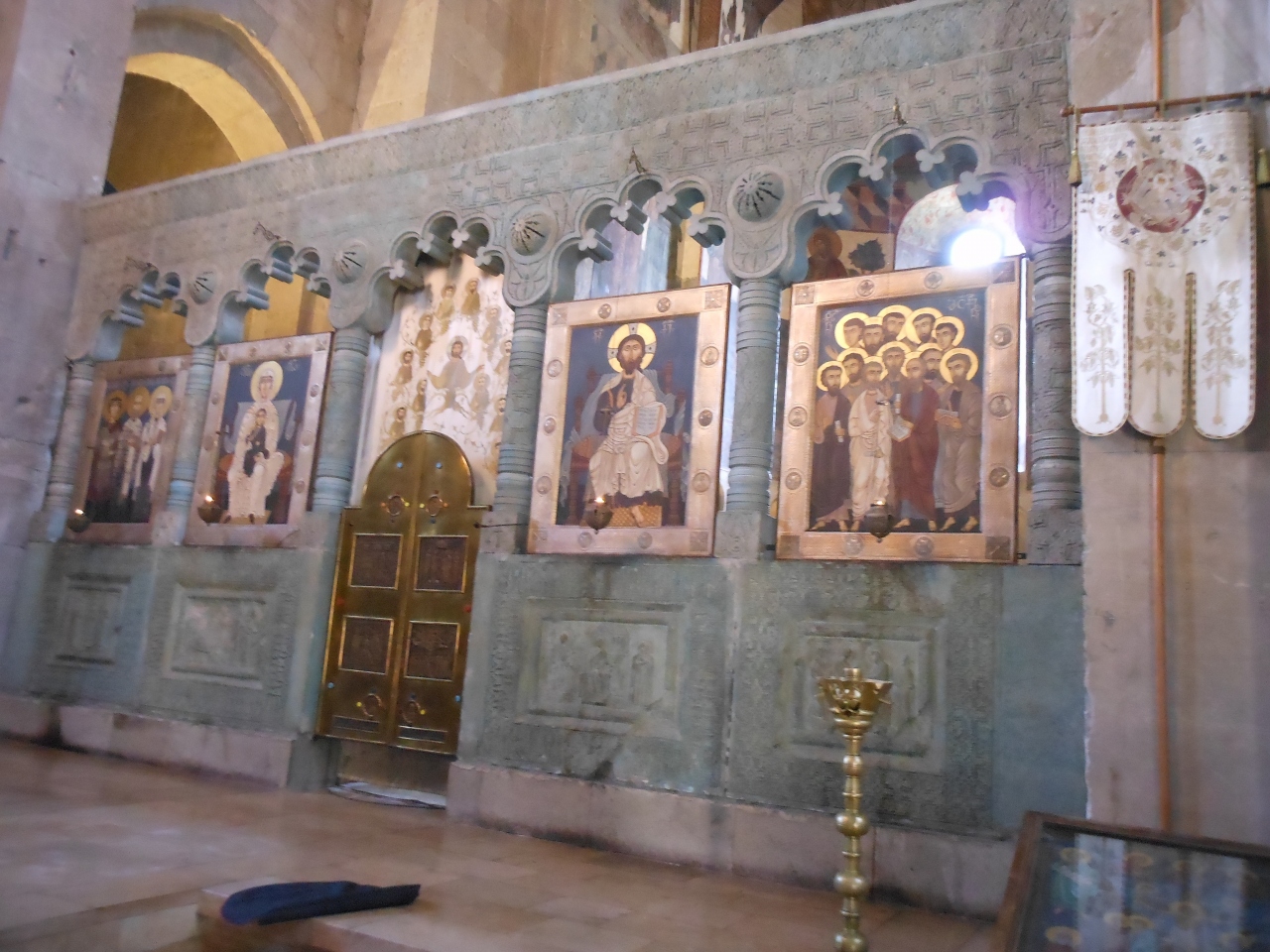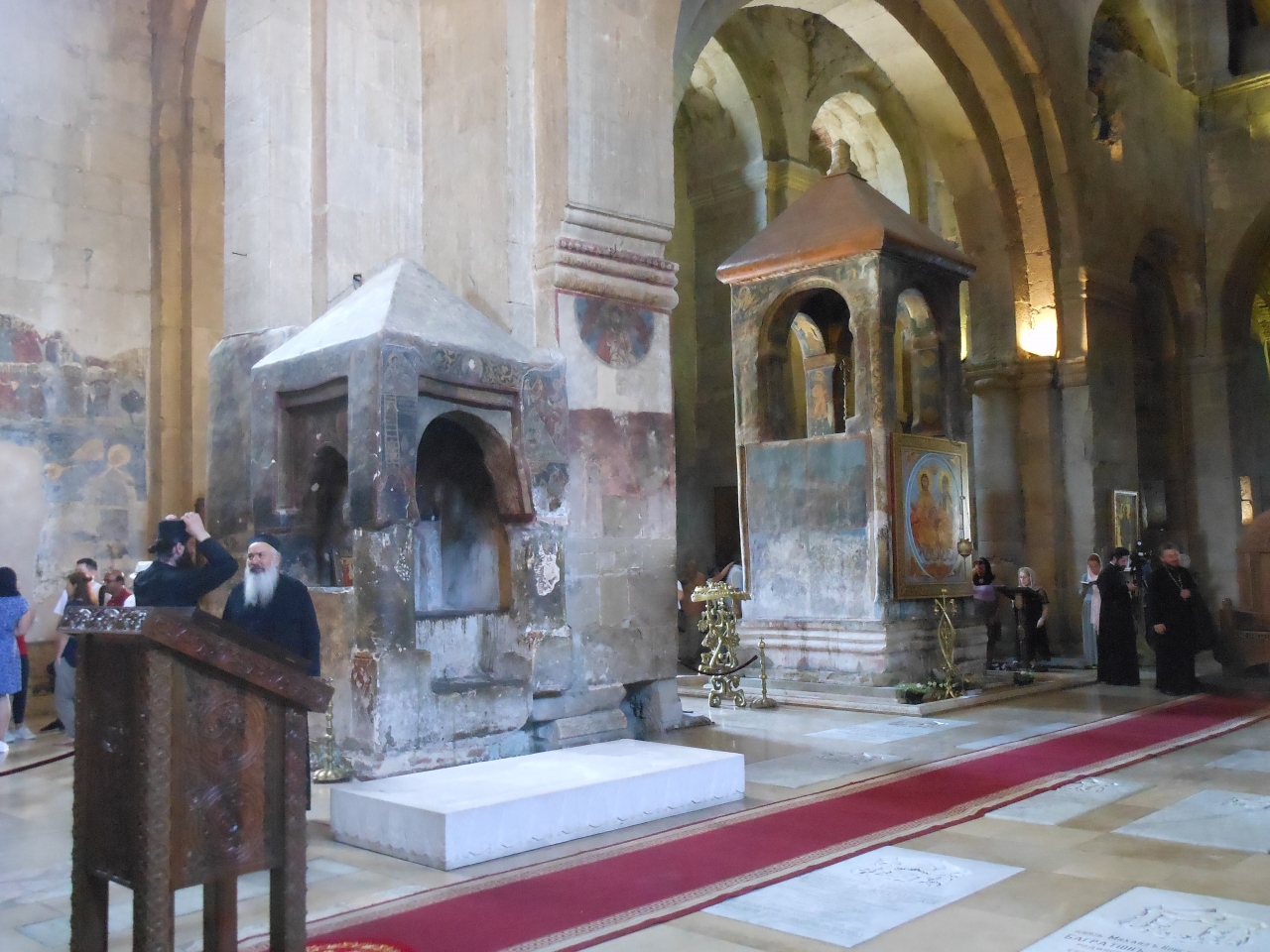 ムツヘタの小さな街に大きく鎮座するジョージア最古の教会と言われるところです。敷地、聖堂も大きく、フレスコ画もたくさん残されており見ごたえがあります。訪れた時はどこかの大主教?が来られるとかで聖職者も多くみられ、準備の様子を見ることが出来ました。