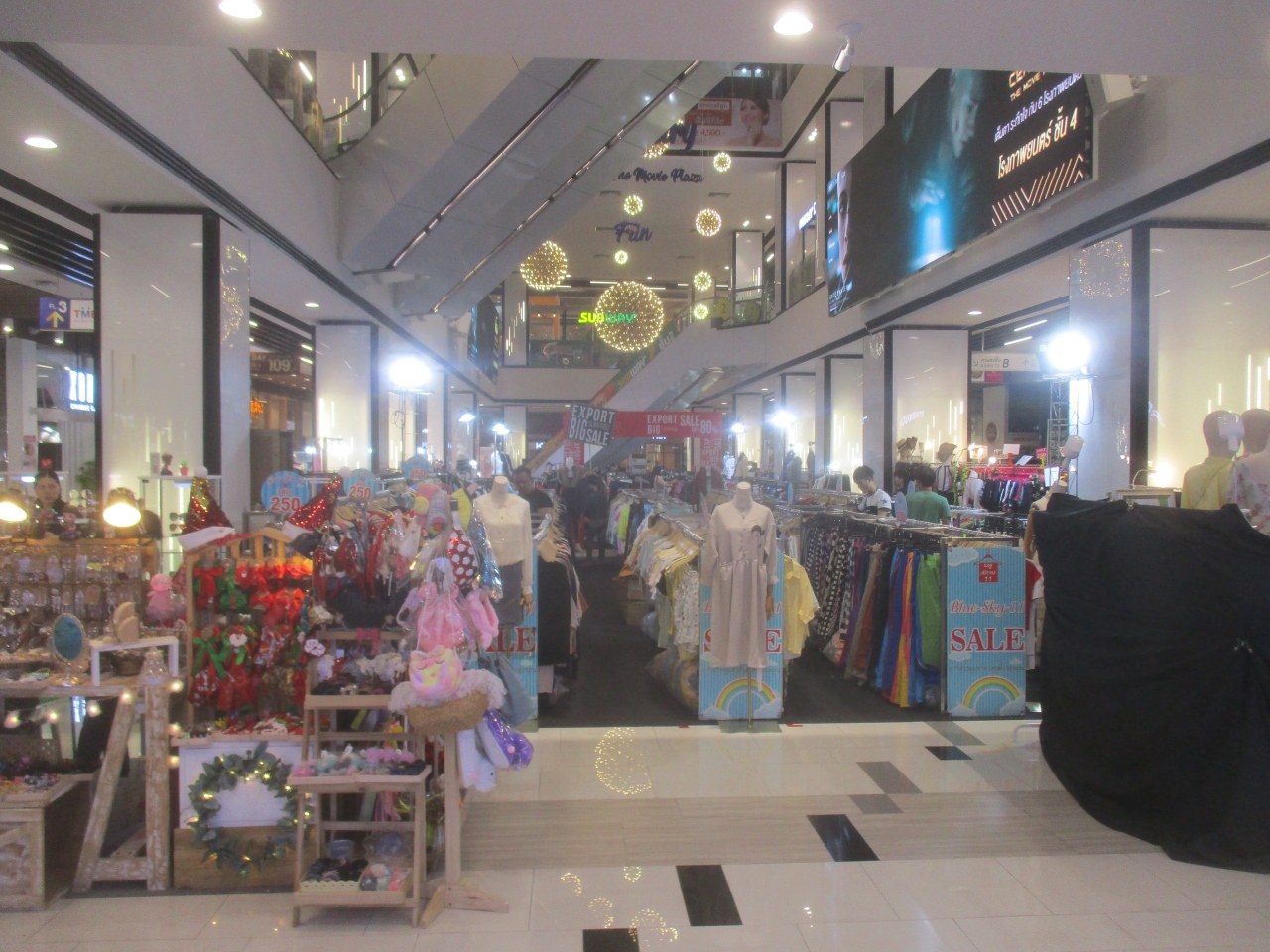 クリスマスの時期にセンチュリー ザ ムービープラザ オンヌットに訪問しました。メインエントランスには大きいクリスマスツリーが置かれていました。店内ではリースを飾って、クリスマスグッズの販売をしていました。日本で言うと年末セールのようなイベントを開催していました。