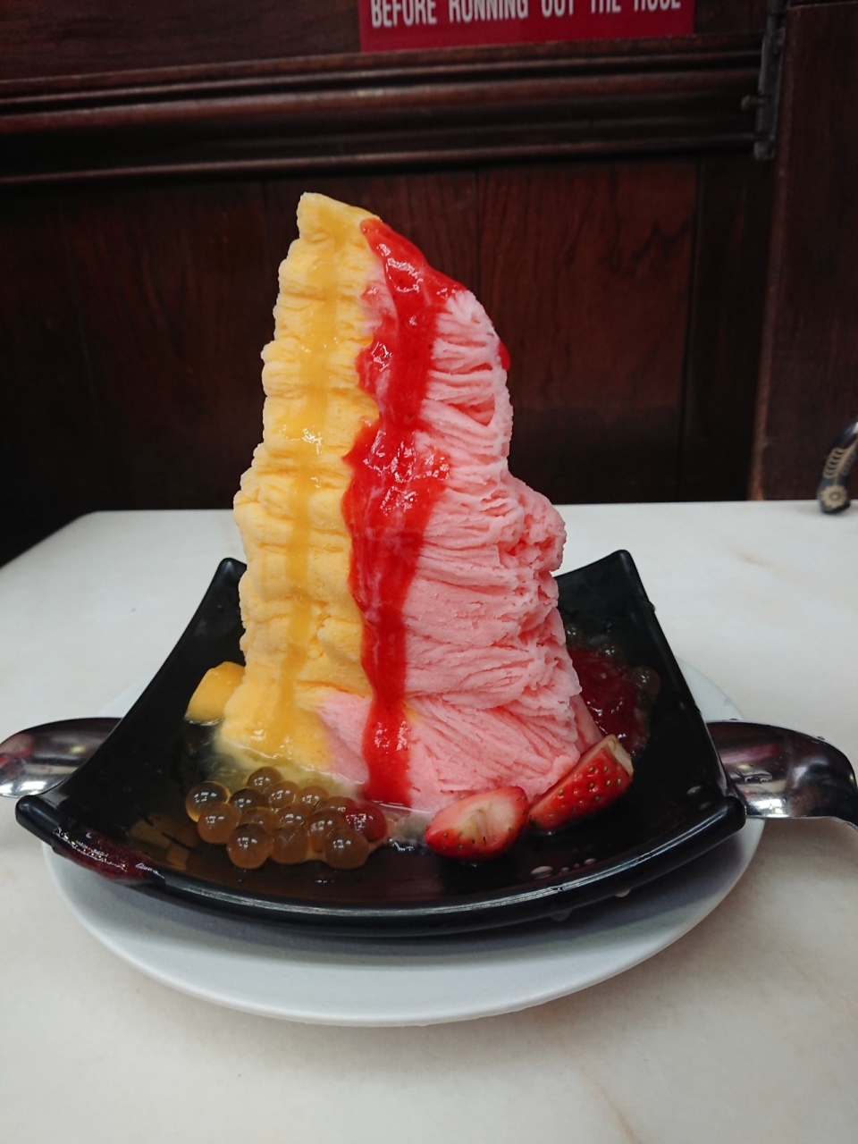かき氷は日本のかき氷とは違い、台湾などでよく見かける氷に味が付いたタイプです。あまり日本では食べる機会がないので、テンションがあがりました。味も結構おいしいです。何より、ほとんどのメニューが5.5~6.5$程度でしかもボリュームがあったのでとてもコストパフォーマンスに優れたお店だと思いました。