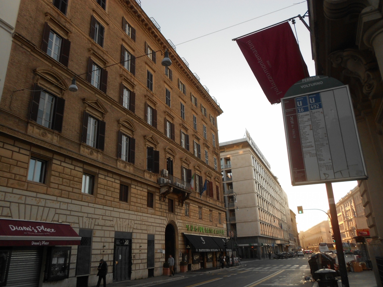 テルミニ駅をマルサラ通りに出て、五百人広場の先にあるバス停 Via Volturno から
