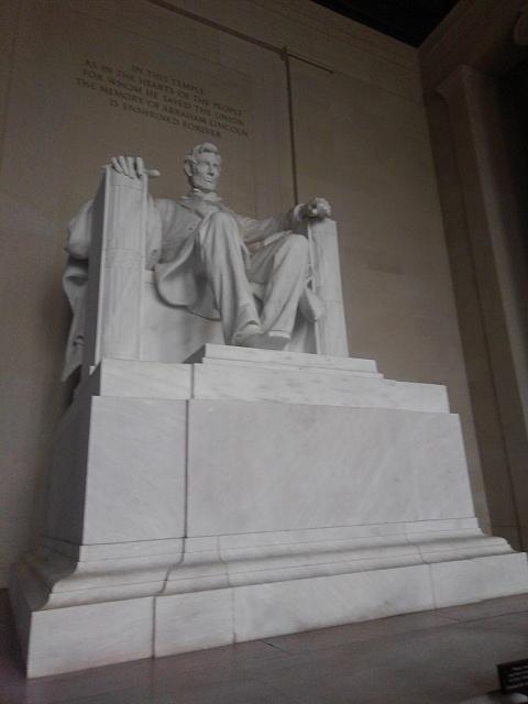 ワシントンDCのナショナル・モールの西端にあります。前方にリフレクティング・プールがあり正面にワシントン記念塔があります。36本のギリシャ神殿風の柱で囲まれた建物でド~ンとリンカーンが椅子に鎮座してます。ほかには何もありません。左右の壁には「人民の人民による人民のための政治」の演説の文章が刻まれています。リンカーンの見つめる先には国会議事堂があり、政治を見守っています。一度は見ておきたい景色です。
