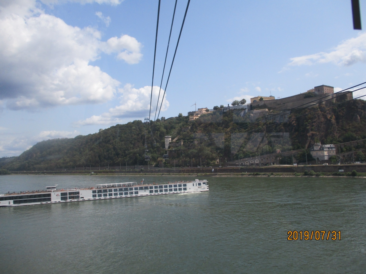 コブレンツの観光スポット「ドイチェスエック」の南側に乗り場があります。このゴンドラは、ライン川対岸の山の上に築かれたエーレンブライトシュタイン城塞につながっています。ゴンドラからは、眼下にライン川、コブレンツ市街、そしてモーゼル川との合流点を見渡せ、素晴らしい空中散歩を楽しむことができます。
