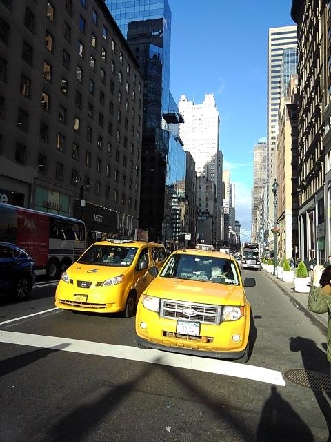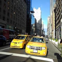 マンハッタンのビル街の中のイエローキャブは ニューヨークの景色と言えます。イエローキャブをどのようにカメラにおさめたらいいかを考えたところ 横断歩道での撮影が一番と思いました。イエローキャブは たくさん走っているから 撮るのは簡単。何度か信号の変わる横断歩道を 行き来はしましたけどね。