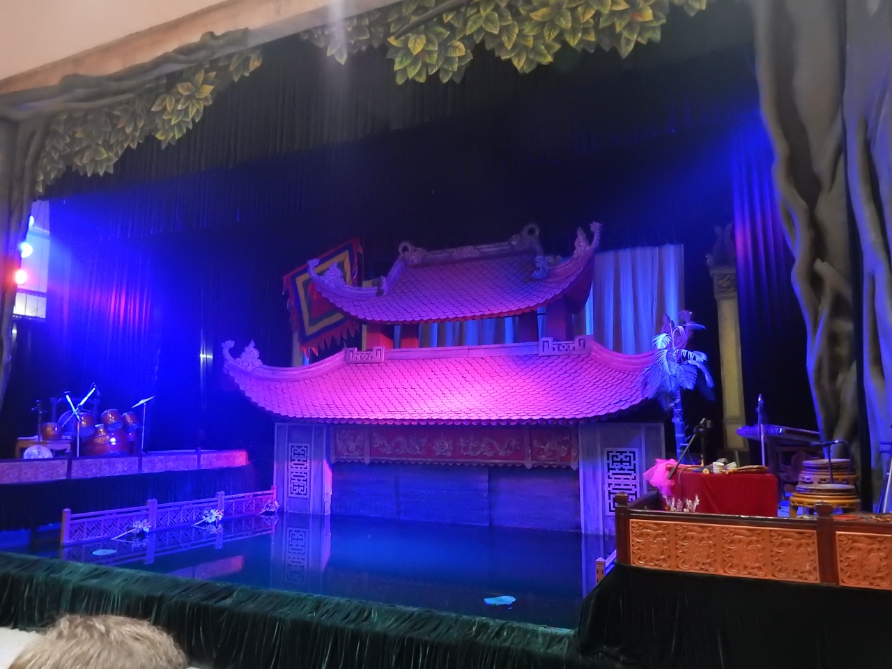 水面のステージで人や動物の形をした人形たちによる人形劇なので、あまり期待していなかったのですが、ストーリー性や人形のコミカルな動きに加えて伝統楽器を使った生演奏があり約50分間の上演を十分に楽しめました。