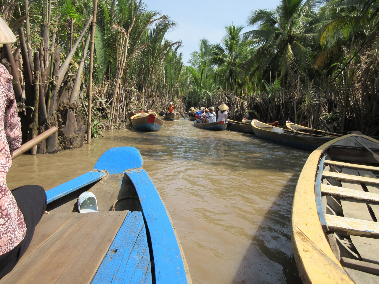 ホーチミンには観光スポットがたくさんありますが、メイン川クルーズはお勧めの観光スポットです。日本からも予約ができます。最初はボートに乗って行きますが、途中から数人乗りの手漕ぎボートに乗り換えてジャングルのなかをクルーズします。