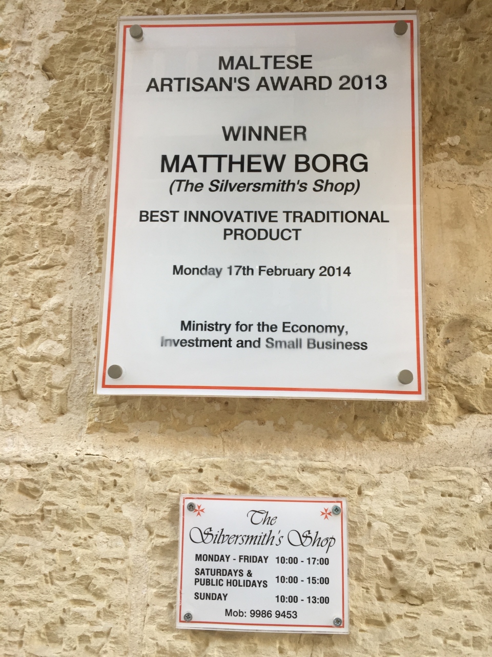 シルバーアクセサリーが好きで、手作りのものを売っていてここがとても評判が良さそうだったので行ってみました。2013年に“Maltese Artisan's Award”という賞も取っているようです。時間がなくて、でも5分で気に入るネックレスを見つけました。20EURで値段も手頃でとても満足です。