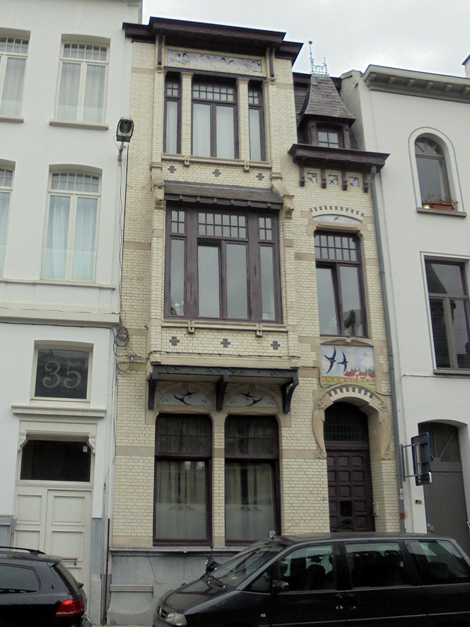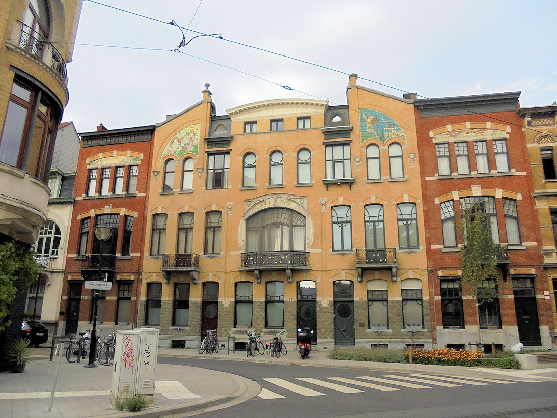 トラム広場(Antwerpen Draakplaats)からベルヘム駅までの区域が特にアールヌーボー建築が多い区域ですが、少し北西のオーステン通り、フローテホント通りにも素敵な建物がたくさんありました。