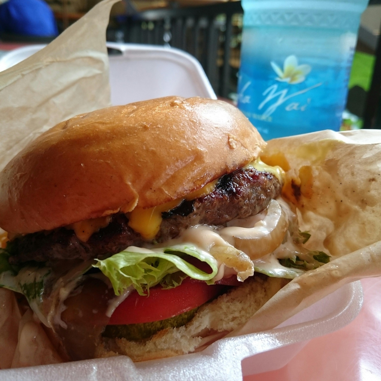 パテは日本のハンバーガーの倍くらい!その場で調理してくれるのでジューシーです。