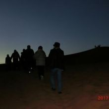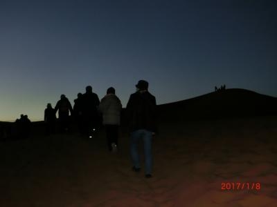 サハラ砂漠の日の出を見に暗い中を歩いていきます。