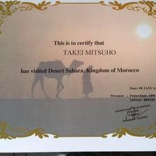 サハラ砂漠に来た証明と土産にビンに入った砂をもらいました。