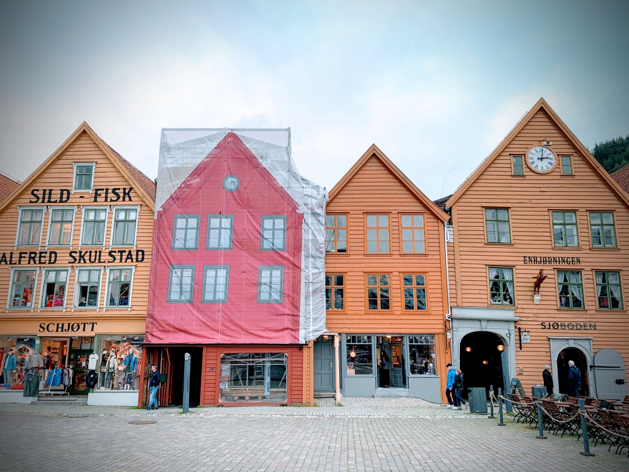 観光本の写真で登場する光景です。訪れたときには工事中の家屋があって、イメージの幕がかぶせて、従来の雰囲気を損なわれない対応が素晴らしいと思いました。ここの全景をの写真を撮るならば、手前の埠頭から撮るのがオススメです。