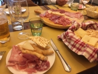 メイン料理前に注文したハムがとてもおいしいです。いろいろなハムがセットになっているものを注文しましたが、ボリュームがすごいです。これとワインだけで充分でしたが、その後オーダーしたパスタもすべておいしかったです。