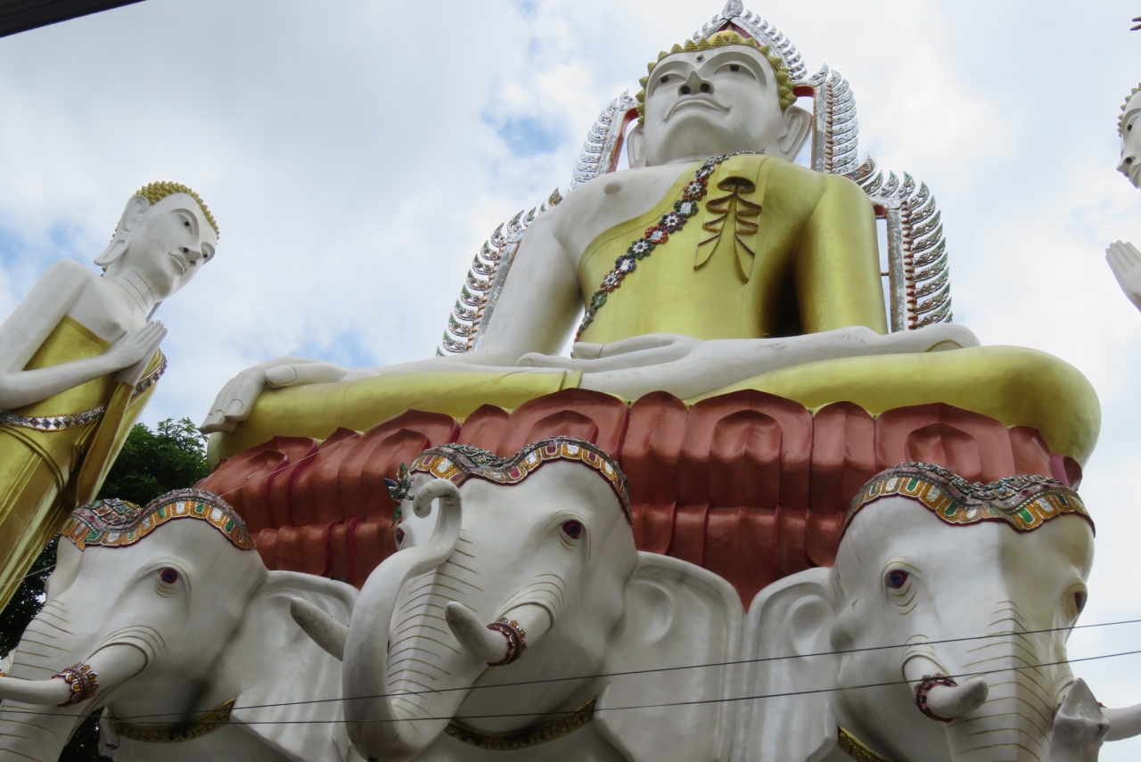 ワットパクナムから見える大きな仏像は気になる人が多いと思います。行ってみるとほんとにとても面白くて、つい顔がにやけてしまうお寺でした。信仰の場にこういう言い方は失礼かもしれませんが、仏像の顔も個性的でユニークなんです。観光客は全くいませんでした。