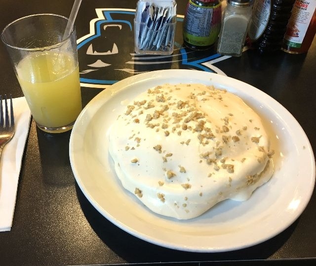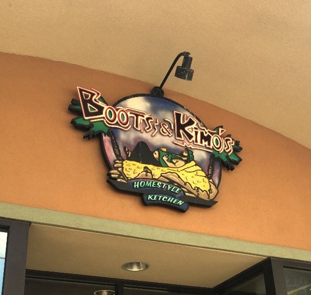 市バスに揺られて約40分から1時間。カイルアの街の人気パンケーキショップ、ブーツ&キモズ。交差点の角にあるので場所はわかりやすいと思います。ターゲットの正面です。近くにはオーガニックスーパーのホールフーズもあり、おしゃれな雑貨の売っているショップもたくさんある人気エリアです。こちらでおすすめを聞いたところマカダミアナッツのソースのかかったパンケーキとのことでした!日本ではあまりマカダミアナッツのソースってないと思うのでぜひ挑戦してみてください(^^)/