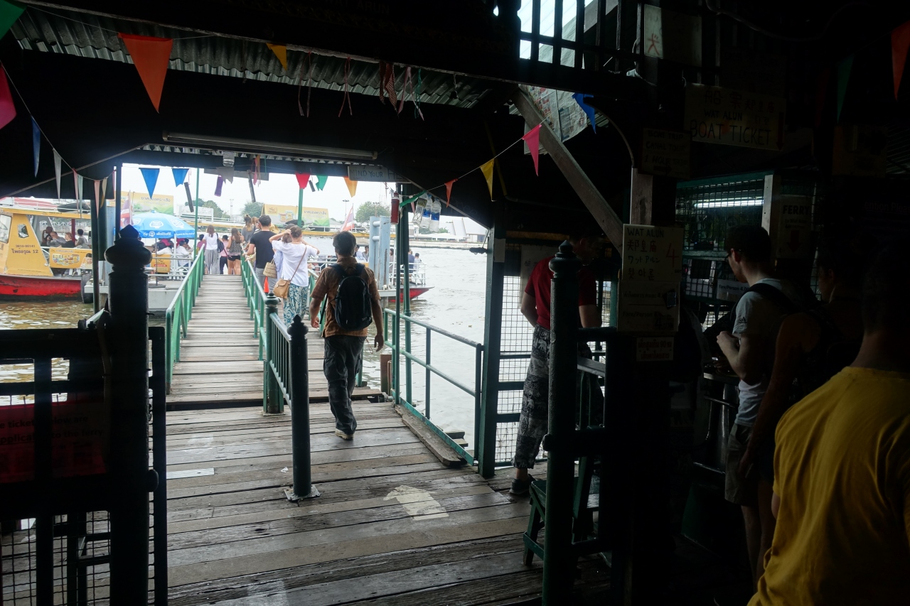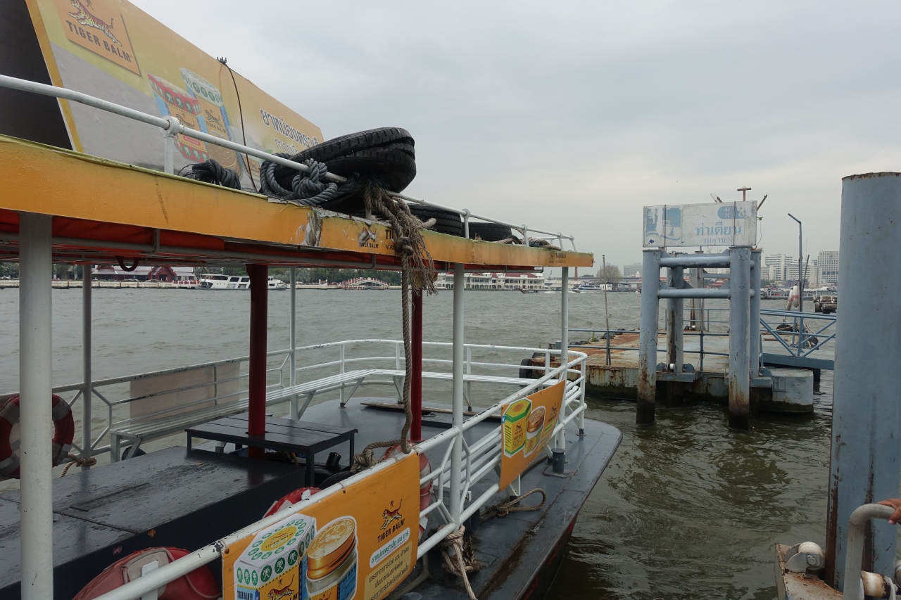 以前はチャオプラヤーエクスプレスが停まったのですが、対岸のワットアルンのほうに停まるように変わっていました。ターティアンへはワットアルンから渡し船でアクセスする形になるのでやや不便になったかな。ワットアルンからの渡し船は片道4バーツです。