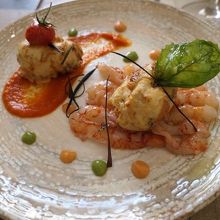 @前菜:ガンベロロッソのカルパッチョとクリーム