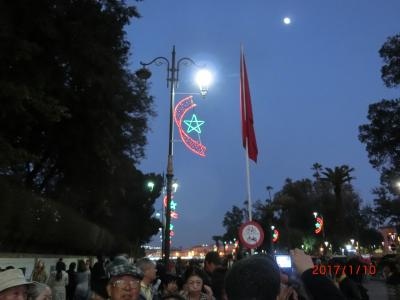 マラケシュ旧市街にはモロッコの国旗のマークが浮かんだ。