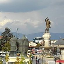 マケドニア広場から石橋を渡ったところにあります。片手をあげたフィリップ2世の像が建ってます。フィリップ2世は、アレクサンダー大王の父親であり 弱小国であったマケドニアのを発展させた英傑とのことです。在位は紀元前359年から336年。アリストテレスを招いて、王子アレクサンドロス(のちの大王)の家庭教師にしたとか・・・歴史が重い・・・他にもアレキサンダーの親子像・噴水の母子像・聖キュリロスと聖メトディウスの兄弟像などたくさん彫刻があり 古い歴史を感じる感慨深い広場です。