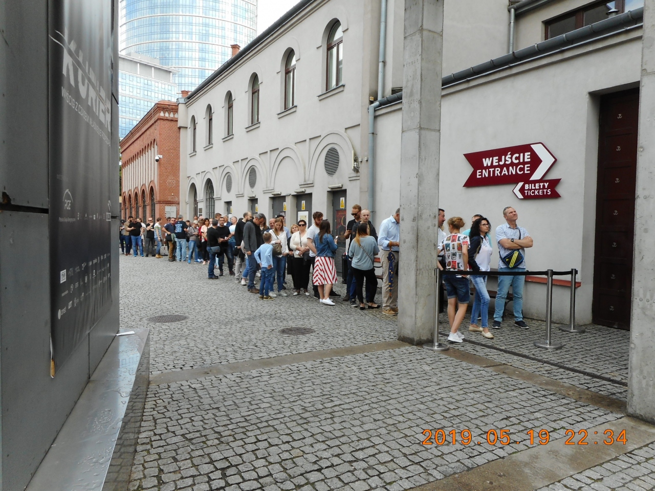 行きはサスキ公園から歩いたので30分程、帰りはワルシャワ中央駅まで徒歩で30分でした。博物館はさすがに混んでました。無料入場の影響もあったのだろうと思いますが、ワルシャワ観光の中では珍しく入館まで15分くらい並びました。博物館の向かい側にあるコインロッカーが満杯になるほどは混んでなかったですが、内部見学時は少し混んでいたので多少ゆっくりした歩調で見学することになってしまいました。