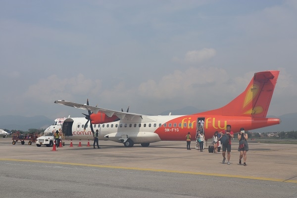イポーに行くにはクアラルンプールから電車を使うことが多いと思いますが、シンガポールから飛行機でも行けます。空港は小規模で、当然沖止めで歩いてターミナルの建物に向かうスタイルです。カウンターも2つくらいしか開いてなくて、入国審査にけっこう並びました。市内まではタクシーで30分弱。タクシーは事前にカウンターでチケットを買うタイプなので安心ですが、運賃が高いので、Grabのほうがおすすめです。