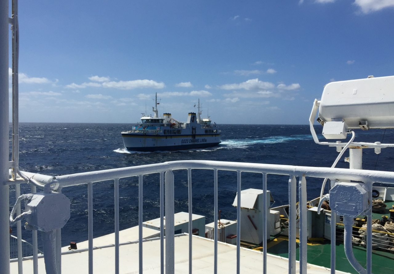 マルタ島最北のCirkewwaとゴゾ島南東のMgarrを結ぶフェリー。片道25分くらい。料金は往復4.65EURで、帰りにまとめて払うので行きはお金を払わずに乗ります。