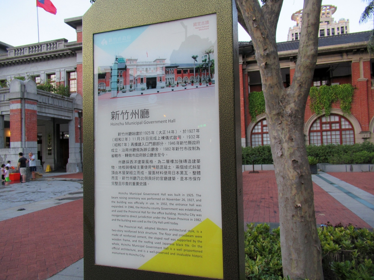 初めて訪れた新竹、失礼ながらIT企業の集積地というイメージしか持っていなかった街であったので、このような立派な日本統治時代の庁舎が、往時の姿を失わないように美しく修復されつつ、現役の庁舎として利用されていることに感動しました。噴水で遊ぶ地元の子供たちにとっても身近な存在となって、いつまでも保存されてほしいと思いました。また、この建物は1927年(昭和2年)竣工、日本統治時代の建物がいかに頑丈なものかという点に改めて驚かされました。