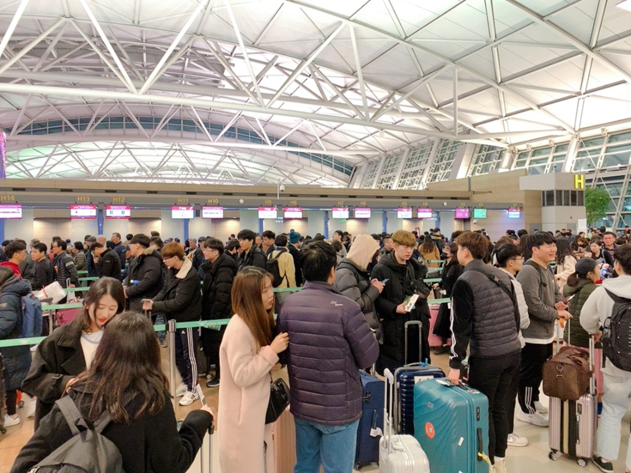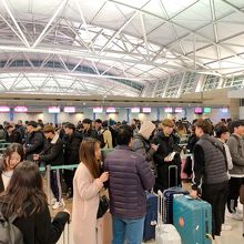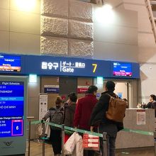 私が利用したアシアナ航空や、帰りに利用したpeach航空のチェックインカウンターはそこまで混み合っていませんでしたが、どこの航空会社なのか、朝5時台からかなり大行列になっている航空会社の窓口もありました!