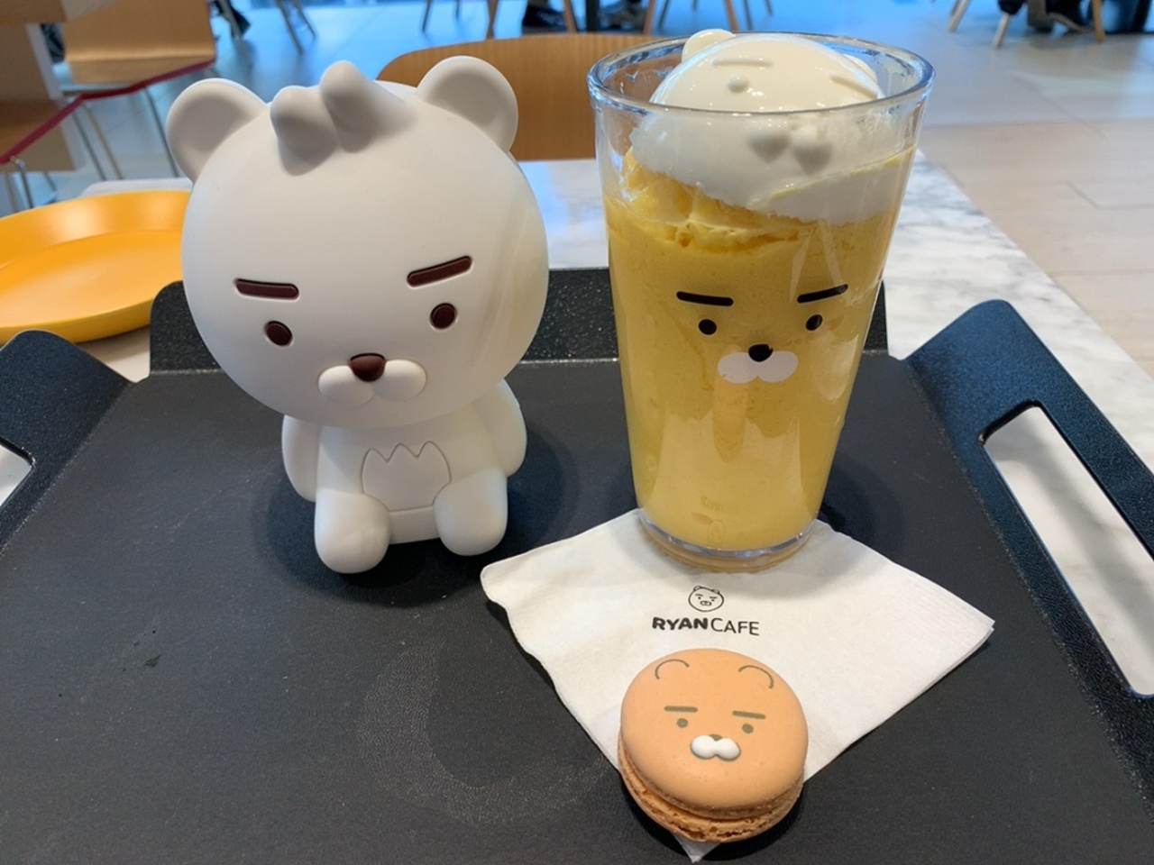 カフェは、キャラメニューも楽しめるので記念に良いかも。 ミルクプリンののったマンゴースムージーや、ライアンのマカロンも美味しかったし、超かわいかったです。 SNS映えするカフェでした。