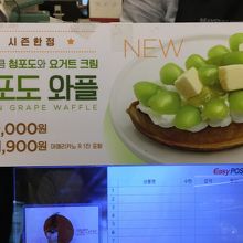 綺麗とは言い難いのですが、お手洗いもあって買い物の合間に休憩するのにもってこいのお店。 いつも、春ならイチゴのワッフルを… ならマスカットのワッフルを…と、その季節のものを注文して楽しんでいます!(^^)