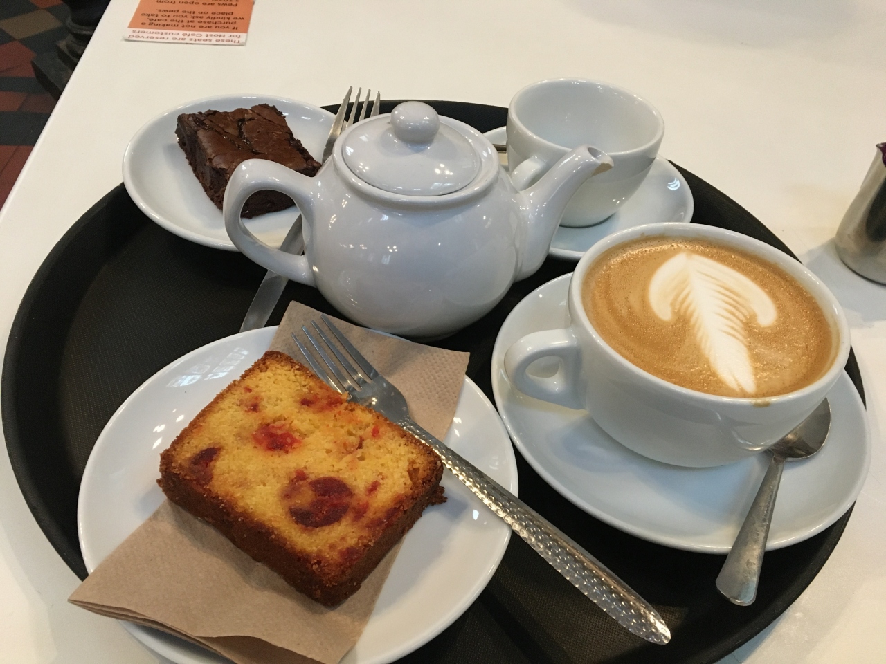 イングランド銀行に行った帰りに見つけたカフェ。聖メアリー・オルダーメアリー教会の中にあります。パウンドケーキとコーヒーをオーダー。ステンドグラスからの穏やかな日差しを浴びて気持ちよく過ごしました。礼拝席に座って食べてもOKです★近くで買ったサンドイッチや持参のお弁当をここで食べてる人もいました。金融街なのでビジネスマンはもちろん、学生も多かったですよ。日本人スタッフの方がいて、親切に話しかけられました。出身地が近かったので、とても喜んでました^^。