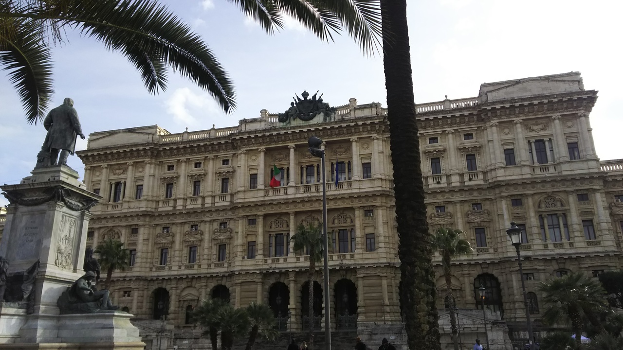 最高裁判所前の広場にはブロンズ像があり、ちょっとした広場になっています。とても整備されててきれいですが、なぜかヤシの木。イタリアの建物にヤシの木はあまり似合わないのにどうしてだろう?とふしぎになりました。